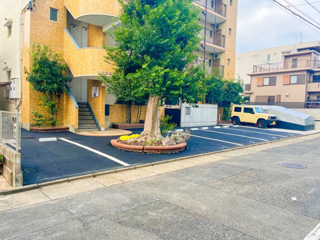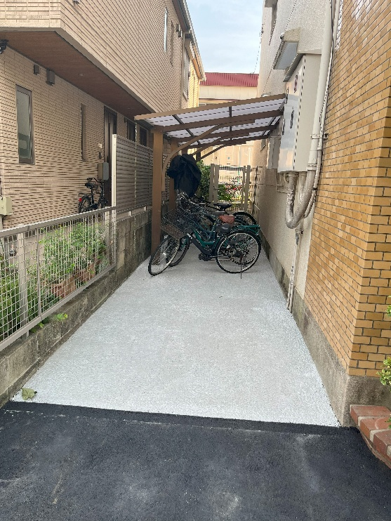 駐車場の奥にある駐輪場もアスファルトを敷き替えました。